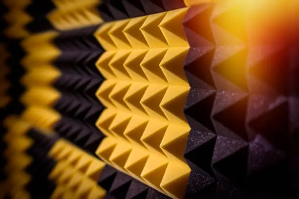 La espuma acústica, o de aislamiento acústico, está diseñada para absorber el sonido y reducir la reverberación en un espacio determinado.