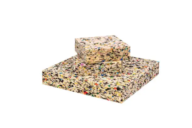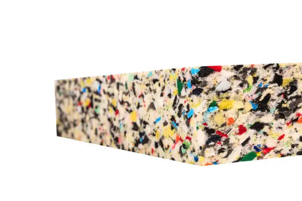 El aglomerado de espuma es un material compuesto hecho a partir de restos de espuma que han quedado de otros procesos. Estos trozos son sometidos a un proceso de molido y luego se unen con un adhesivo especial. Es un material de gran durabilidad, con excelentes propiedades de aislación y económico.